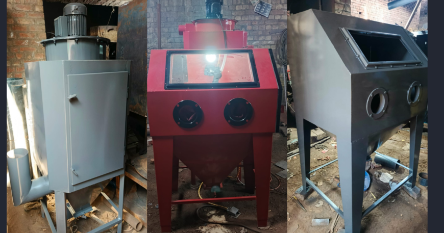 Our Sand Blasting Cabin Machine is designed for precise and efficient surface cleaning of various materials. The machine comes with a cabin size of 3 feet (width) × 2 feet (length) × 2.5 feet (height), providing ample workspace for smaller components while ensuring effective blasting performance.
